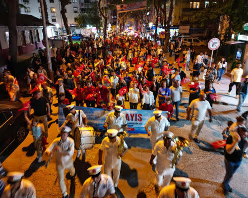Dikili Belediyesi bünyesinde düzenlenen Gençlik Yürüyüşü’nde çok sayıda vatandaş ellerinde Türk bayrakları, Atatürk posterleri ile Bülent Ecevit Meydanı’ndan Atatürk Meydanı’na belediye bandosu eşliğinde yürüdüler. İzmir Büyükşehir Belediyesi Pop Orkestrası’nın konserinde bayram coşkusu doruğa ulaştı.